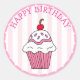 Sticker Rond Cute rose Cupcake d'anniversaire
