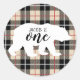 Sticker Rond Cute Thompson Camel Plaid Bear 1ère fête d'anniver