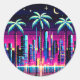 Sticker Rond Cyber Palmes : Neon Nightscape