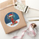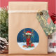 Sticker Rond Dachshund Chien en neige avec cadeaux de Noël