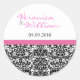 Un motif en papier peint damassé noir et blanc avec une règle rose accentue cet autocollant. Personnalisez-le facilement avec votre ou vos nom(s), date de l'événement ou remplacez toute information. Disponible en couleurs alternatives avec des produits correspondants.