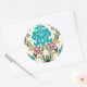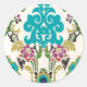 Sticker Rond Damask Floral Patterns Plum Turquoise