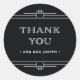 Ces stickers de mariage glamour ont une touche moderne sur l'art déco classique. Des bordures géométriques blanches et ornementées ornées décorent un élégant arrière - plan noir onyx pour un look de mariage spectaculaire et vintage. La typographie blanche classique dit "merci", ce qui les rend parfaits pour ajouter à vos faveurs de mariage.
