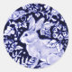 Sticker Rond Dedham Blue Rabbit, Classic Blue & White Design