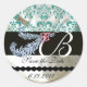 STICKER ROND DIAMOND FEATHERS BLEU SILK BLEU SILK DAMASK MONOGR