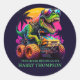 DINOSAUR T REX LIVRE Classic Round Sticker Un dino personnalisé pour un petit enfant. ÊTRE PRÊT POUR L'ÉCOLE ? Cliquez sur le bouton "Customiser !" pour modifier la taille du texte, la couleur du texte, le style de police et plus encore ?