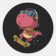 Sticker Rond dinosaure cool jouant skate board