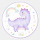 Sticker rond classique violet Dinosaure fête d'anniversaire