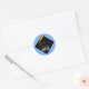 Autocollants de graduation classiques pour cadeaux et faveurs de fête avec casquette noire et pompon doré sur fond bleu clair. Modifiez le texte pour ajouter l'année de la promotion.