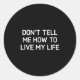 Sticker Rond Don't Tell Me How To Live My Life, Funny, Sarcasti