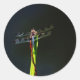 Sticker Rond Dragonfly bleu et noir sur gazon vert et rouge