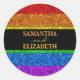 Le drapeau LGBT arc-en-ciel scintille le Sticker mariage lesbien gay. Personnalisez les groupes invitations faux brillants avec vos noms. Célébrez votre amour avec une papeterie unique et stylisée même genre mariage. Un drapeau LGBT scintillant dans une parties scintillant vibrante rouge, orange, jaune, vert, bleu et violet brille. *photo de scintilles pas de parties scintillant réelle!