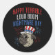 Sticker Rond Drôle 4 juillet Carlin effrayé Feu d'artifice Para