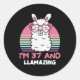 Sticker Rond Drôle Adorable Llama 37e Anniversaire Cadeau Pour