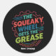 Sticker Rond Drôle Idiom Retro Squeaky Wheel obtient Grease