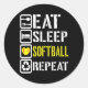 Sticker Rond Drôle Mangez Sleep Softball Répéter Players De Bas