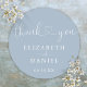 Elégant script de coeur bleu poussiéreux merci autocollant personnalisé avec vos noms et date spéciale. Conçu par Thisisnotme©
