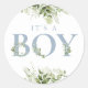 Sticker Rond Dusty Blue C'Est Un Garçon Verdoyant Baby shower F