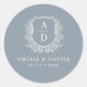 Sticker Rond Dusty Blue Crest Moderne Monogramme Mariage