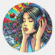 Sticker Rond Écouter de la musique sur les écouteurs Psychédéli