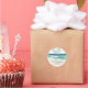 Autocollant Rond Classique Enregistrer la Date de Plage d'Océan à l'Aquarelle Moderne - avec un magnifique océan turquoise et une large plage de sable, accentué d'écriture et de typographie moderne. L'invitation parfaite pour votre mariage à la plage ou de destination.