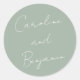 Mariage d'écriture de script moderne Boho Dusty Sage Green Classic Round Sticker