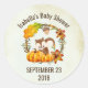 Enregistrez l'autocollant de date personnalisé avec votre nom et votre date d'événement. Conçu avec un mignon écureuil debout derrière quelques citrouilles orange aquarelle. Une couronne de feuillage les entoure d'une feuille de chêne et de fleurs d'orange et d'autres sprigs et feuilles. L'Arrière - plan est de couleur crème, avec un aspect vieillot rugueux autour des bords.