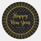 Sticker Rond Élégant Black Starburst Script Bonne année