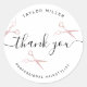 Coiffeur moderne merci design autocollant avec ciseaux d'or faux rose, arrière - plan blanc et police de calligraphie élégante.