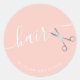 Sticker Rond Elégant ciseaux rose argent coiffeuse