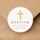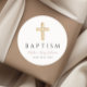 Sticker rond classique personnalisé Elégant Religieux Cross Pink Script Girl Baptism.
