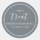 Un simple merci vous faveur merci étiquette autocollant modèle. ce design comprend un minimaliste à emporter modèle, un autocollant autocollant style étiquette disposition, une réception classique moderne et élégante, les noms de mariés mariages, biscuit buffet de bonbons, un modèle de couleur bleu poussiéreux, minimaliste minimaliste simple, personnaliser personnalisée blanc chic, créatif élégant étiquette classe, simple simple simple simple clair simple