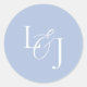 Sticker Rond Élégant et élégant Dusty Blue Monogram Mariage