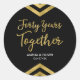 Cet élégant autocollant rond d'anniversaire comporte un chevron géométrique chic et le mot "Quarante ans ensemble" en faux or contre un arrière - plan noir. C'est génial pour une célébration du 40e anniversaire de mariage. Consultez les invitations et les éléments correspondants ici http://www.zazzle.com/collections/modern_faux_gold_chevron_celebration_collection-119531050277382712?rf=238364477188679314 Personnalisez-le avec vos détails en remplaçant le texte de l'espace réservé. Pour plus d'options, cliquez sur le bouton "Customiser". *Veuillez noter que le filigrane Zazzle qui apparaît dans l'aperçu du zoom n'apparaîtra PAS sur le produit imprimé final. © Bois de rose et agrumes
