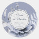 Il s'agit d'un élégant autocollant rond mariage floral classique avec des fleurs bleu clair et bleu marine sur un arrière - plan gris bleu poussiéreux. Il est parfait pour une célébration de mariage d'hiver.
