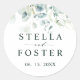 Cet autocollant mariage présente des feuilles peints d'aquarelle, vert botanique et bleu clair.
