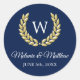Sticker Rond Elégant Mariage de monogramme bleu et or Laurel Ma