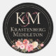 Sticker Rond Élégant Mariage de Moody foncé Monogram Rose hiver