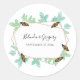 Ce design présente un élégant design de papillon monarque et de feuilles. Le cadre géométrique doré est entouré de feuilles vintages d'aquarelle. Les papillons orange et noir sont attirés par la verdure. Motif de feuilles Damas avec des tons vert aquarelle. Le mélange des couleurs crée un style chic, tendance et sophistiqué. Design élégant autocollant de mariage avec des éléments modernes. La configuration simple de la typographie lui donne un style distinct. Des invitations de mariage et d'autres articles de papeterie sont également disponibles.