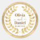Elégant Mariage personnalisé en marbre d'or & couronne de laurier. Ajoutez une touche de sophistication luxueuse à votre journée spéciale avec ces élégants autocollants de mariage personnalisés. Dotés d'un arrière - plan de marbre doré chic aux accents de parties scintillant subtils et d'une conception classique de courroie en or, ces autocollants sont parfaits pour sceller des enveloppes, décorer des faveurs ou ajouter une touche élégante à votre papeterie mariage. Customisez avec les noms du couple heureux et votre date de mariage pour un souvenir vraiment unique. Fabriqués à partir de matériaux de haute qualité, ces autocollants polyvalents sont idéaux pour les mariages, les fiançailles, les anniversaires et autres célébrations mémorables.