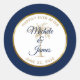 Sticker Rond Elégant Marine Blue Gold Palm Tree Tropical Mariag