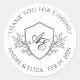 Stickers Merci Mariage Monogramme Vintage élégant. Initiales monogrammes encadrées par d'élégantes crêtes vintages illustrées à la main en noir et blanc, style simple mais sophistiqué. Un choix parfait pour les mariages modernes, classiques et simples. Veuillez vérifier les pièces correspondantes de la collection.