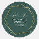 Express votre gratitude dans le style avec cet élégant autocollant de faveur de mariage géométrique et or avec un arrière - plan Emerald Green Avec un cadre géométrique or moderne, police calligraphie classique, ainsi que des noms personnalisables et des dates de mariage, ce design ajoute une touche sophistiquée à vos faveurs de mariage. Parfait pour sceller des sacs, des boîtes ou des enveloppes de faveur, cet autocollant combine élégance intemporelle et esthétique moderne. Personnalisez-le pour rendre votre journée spéciale vraiment inoubliable!