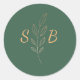 Sticker Rond Élégant moderne simple Monogramme Mariage vert