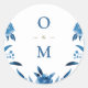 Sticker Rond Élégant monogramme Mariage chinois floral bleu