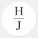 Célébrez votre union avec notre élégant Sticker rond Mariage noir et blanc Monogram Classic, un emblème parfait de votre histoire d'amour. Ce design sophistiqué présente les initiales entrelacées "H" et "J", symbolisant la belle jonction de deux vies. Conçu dans une esthétique minimaliste, cet autocollant allie élégance contemporaine et charme intemporel, ce qui en fait un choix idéal pour ajouter une touche personnelle à vos invitations de mariage ou des notes de remerciement. La typographie simple et propre offre une touche moderne sur les monogrammes mariages classiques, offrant une déclaration visuelle unique et formelle qui met en valeur tout thème mariage, d'une célébration printanière luxueuse à un événement romantique et minimaliste.