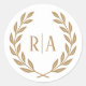Sticker Rond Élégant Monogramme Mariage Wreath Or Blanc