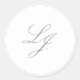 Sticker Rond Élégant Monogramme Simple Script Dusty Blue Mariag