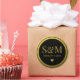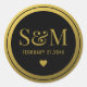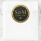 Sticker Rond Élégant Noir Et Or Mariage Initiales Monogrammes