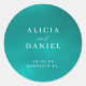 Whimsical moderne mer océan mer plage mariage enveloppe d'invitation sceau ou favoriser emballage rond autocollant en bleu turquoise avec étoiles de mer et script de typographie blanche. Un choix parfait pour une plage moderne, en bord de mer, en bord de mer, côtière, tropicale, nautique, croisière ou mariage de destination d'île.